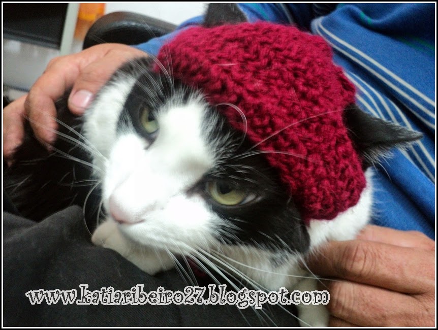 Touca para gatos em crochê é a arte de hoje aqui no blog Katia Ribeiro Crochê.