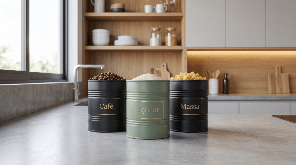 Muitas vezes, a solução para uma cozinha desorganizada está escondida naquelas latas de leite em pó ou suplementos que descartamos semanalmente. O consumo consciente e a decoração “faça você mesmo” (DIY) ganharam um novo status, onde o lixo se transforma em peças de design. Ao reaproveitar esses recipientes de metal, você não apenas ajuda o meio ambiente, mas também cria peças exclusivas que trazem sofisticação ao ambiente gastando pouquíssimo.