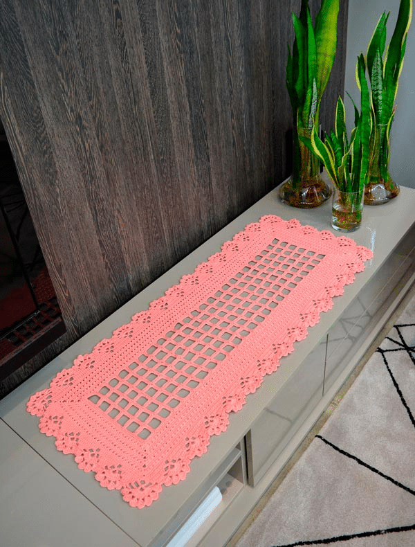 Antes de mais nada, vamos falar sobre o crochê! É uma técnica que nunca sai de moda e sempre adiciona um toque de aconchego aos espaços. E quando combinado com a tonalidade suave do salmão, o resultado é simplesmente deslumbrante! O trilho de mesa em crochê salmão é perfeito para quem busca um toque de cor sem exageros, mantendo a sofisticação na medida certa.