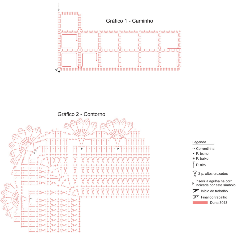 Com o fio na cor salmão, seguir o gráfico 2 ao redor do caminho.