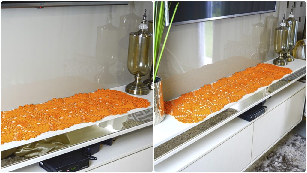 Para quem deseja personalizar ainda mais o trilho, é possível variar as cores dos fios ou acrescentar outros detalhes, como aplicações pequenas ou pontos decorativos adicionais. O trilho de mesa em crochê Dubai, além de funcional, serve como inspiração para quem aprecia trabalhos manuais e busca dar um toque artesanal ao lar. Essa peça é versátil, encaixando-se tanto em ambientes tradicionais como em propostas mais contemporâneas.
