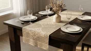 O trilho de mesa em crochê é aquele detalhe que organiza a composição sem encobrir a beleza do tampo. Ele cria um eixo visual para arranjos e travessas, traz textura tátil e aquece a cena com o charme do feito à mão. A versão atual aposta em pontos mais baixos (fáceis de limpar e estáveis para copos e taças), paletas terrosas e neutras e acabamentos limpos que parecem de loja. A seguir, você aprende a escolher fio e agulha, definir medidas que valorizam sua mesa, construir um trilho reto, estável e sem ondular, finalizar com borda firme e fazer a manutenção correta.