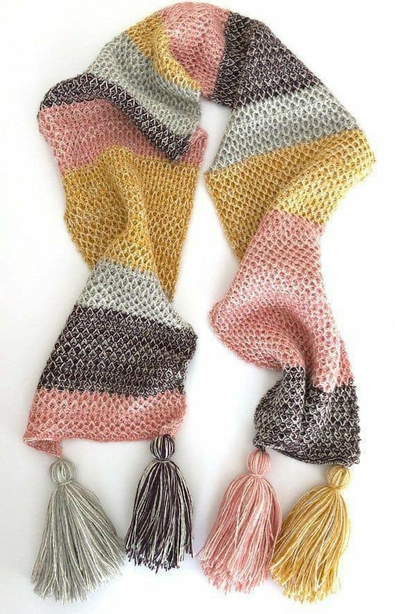 - Cachecol em ponto rede, leve e moderno.