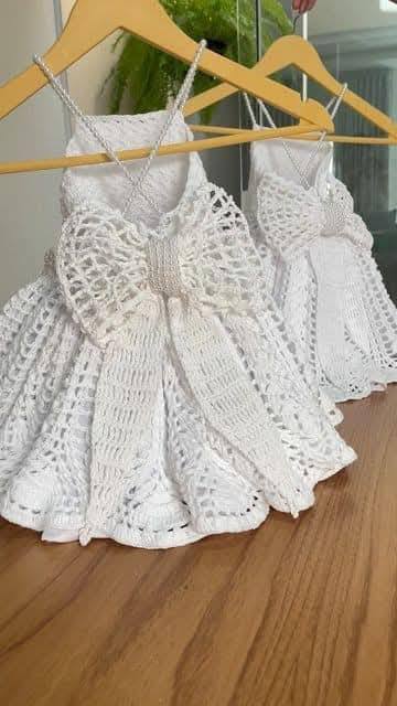 Os vestidinhos de crochê são versáteis e podem ser estilizados de diversas maneiras. Para um visual casual, podem ser combinados com camisetas e tênis. Em ocasiões festivas, sapatilhas e acessórios, como tiaras e colares, complementam o visual sofisticado e delicado.