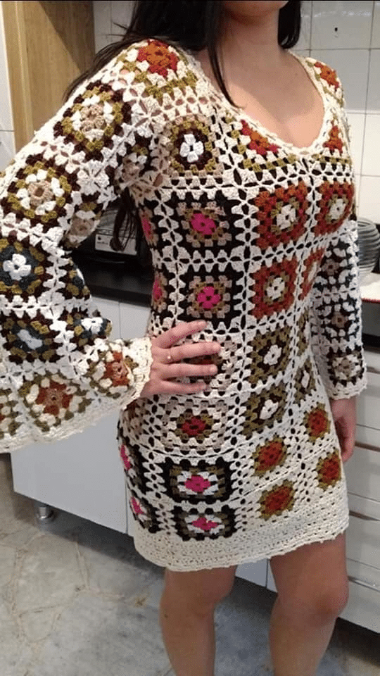 Confira Agora Modelos de Vestidos de Croche Incríveis feitos com a Técnica Granny Squares: