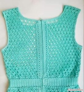 Certifique-se de que o vestido tenha um bom ajuste ao seu corpo. O crochê pode ser moldado para se ajustar às suas curvas, então não hesite em ajustar a peça conforme necessário.