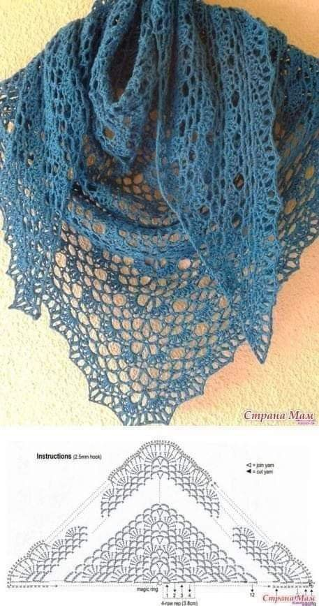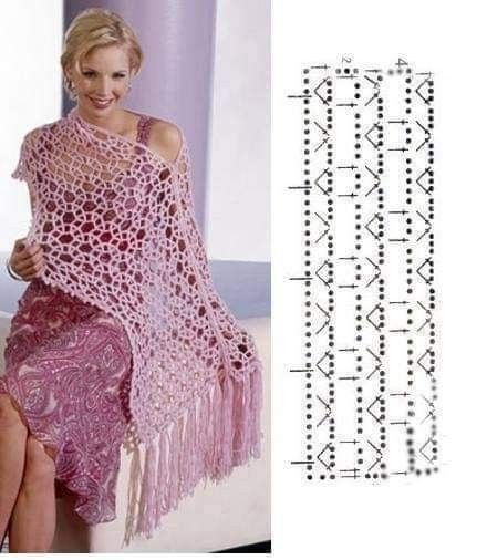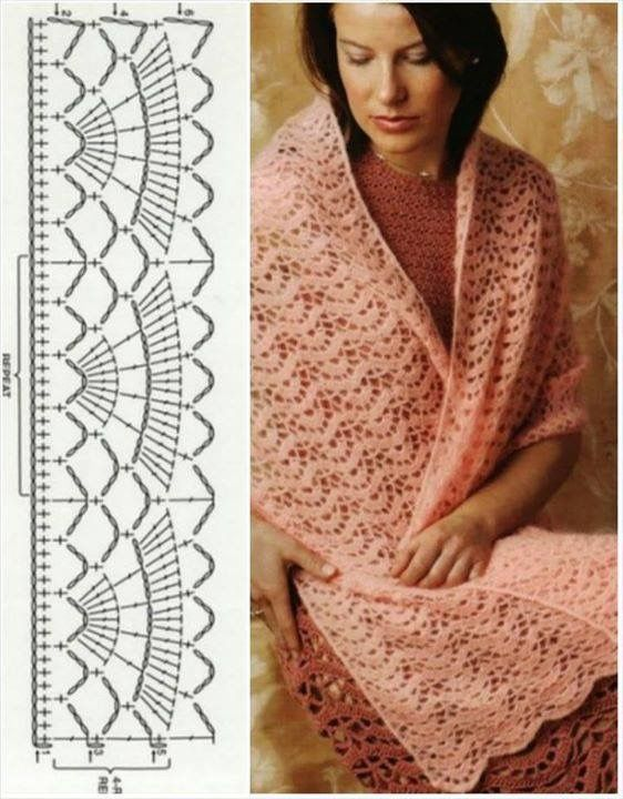O ponto leque é simples e muito bonito. Siga o gráfico abaixo para criar uma echarpe leve e arejada.