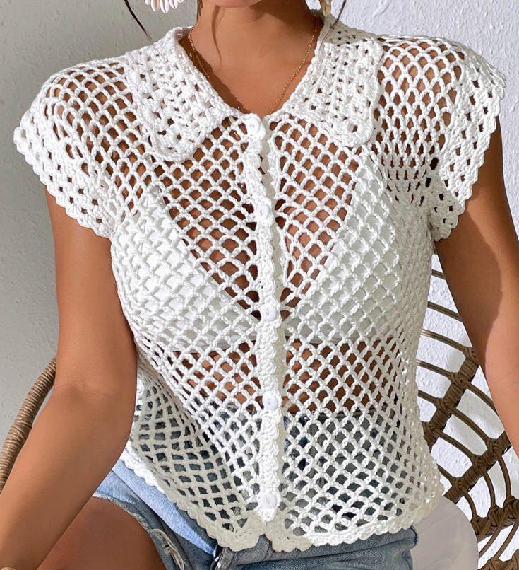 As blusas de crochê para o verão são sucesso garantido por um motivo: unem o frescor dos fios de algodão à delicadeza dos pontos abertos, que deixam a pele respirar e criam um visual leve e natural. Além disso, são versáteis e combinam com tudo — shorts, saias, calças jeans e até saídas de praia.
