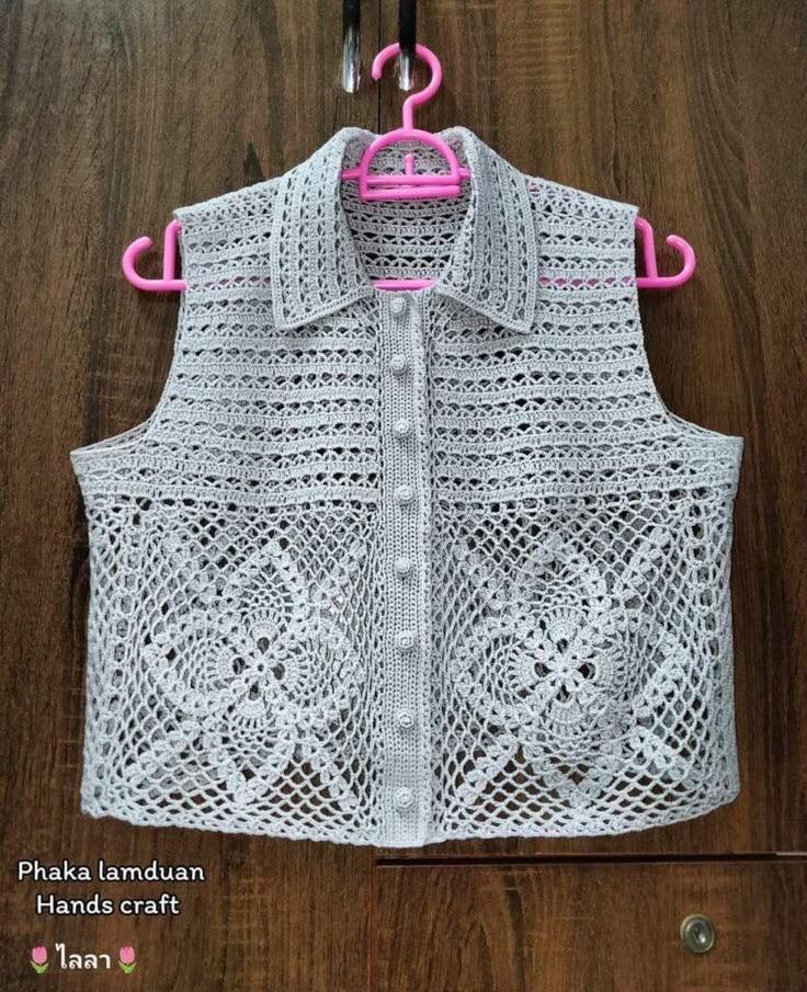 A blusa floral de crochê é um sucesso absoluto entre as artesãs. Feita com motivos de flores unidos entre si, ela cria um efeito visual romântico e vibrante. É uma peça que chama atenção tanto nas cores neutras quanto nas combinações tropicais.