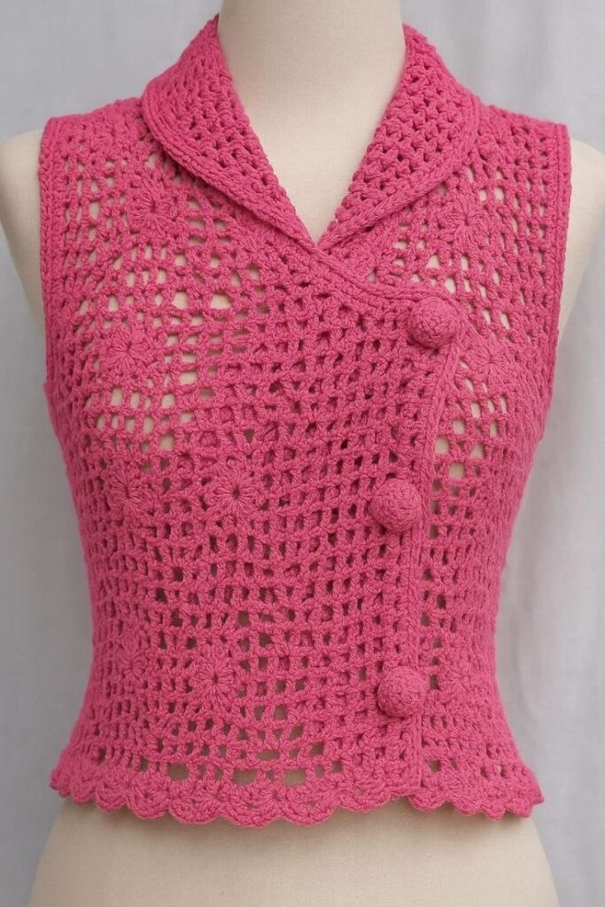Ideal para o calor, a blusa regata em crochê é sinônimo de conforto e elegância. O modelo com decote V alonga a silhueta e combina com qualquer estilo — do casual ao sofisticado.