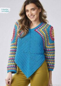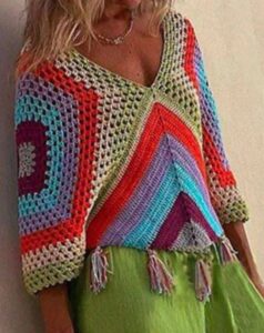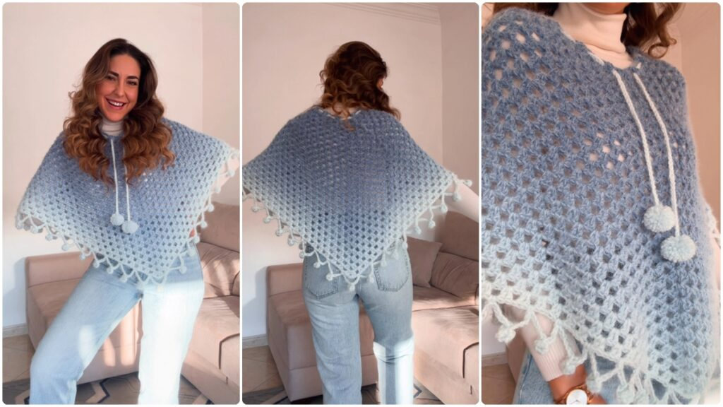- Tamanhos e cores: Disponível em diversas cores e tamanhos, o poncho de crochê pode ser uma peça neutra para combinar com tudo ou colorida para dar um destaque ao look.