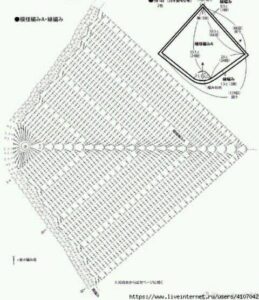 Início: Comece pelo decote. Faça um cordão de 71 correntinhas e feche com um ponto baixíssimo na primeira correntinha. Esta circunferência deve ser suficiente para passar pela cabeça. Se necessário, ajuste o número de correntinhas em múltiplos de 3.