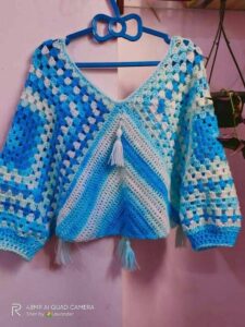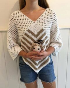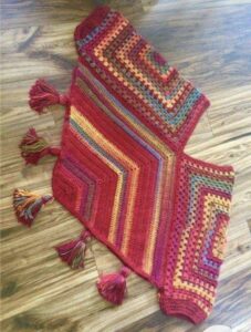 - Textura e padrão: Os pontos de crochê permitem criar texturas variadas, desde os mais simples até desenhos elaborados, trazendo riqueza visual ao poncho.