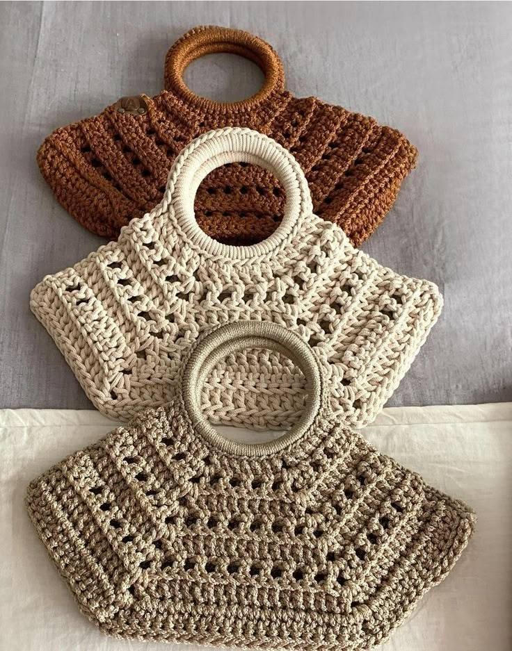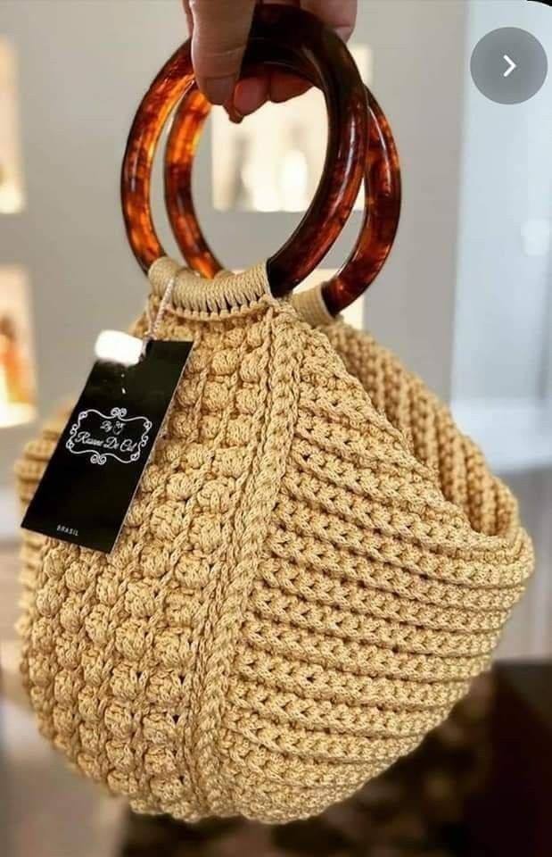 - Um dos modelos mais populares entre iniciantes. O gráfico é simples: base circular em ponto alto com aumentos regulares. Alças de couro ou bambu completam o visual.