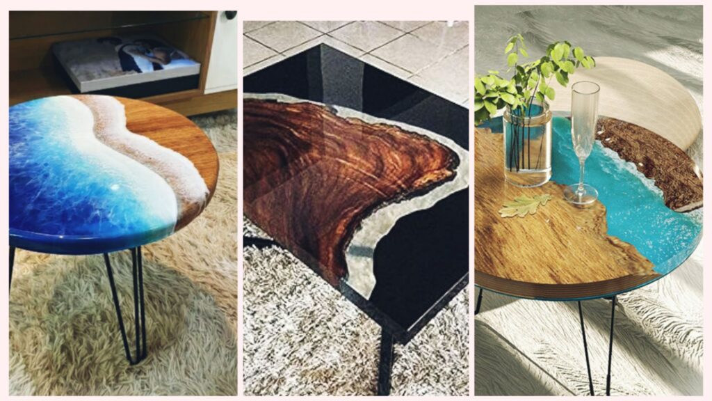 - Mesas de Resina Epóxi: Crie mesas de centro, mesas de jantar ou mesas auxiliares com acabamentos únicos e personalizados.