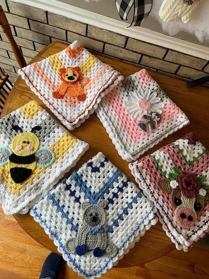 - Mantas com Aplicações: Enriquecidas com elementos decorativos aplicados, como flores e estrelas, que podem ser costurados ou crochetados direto na manta.