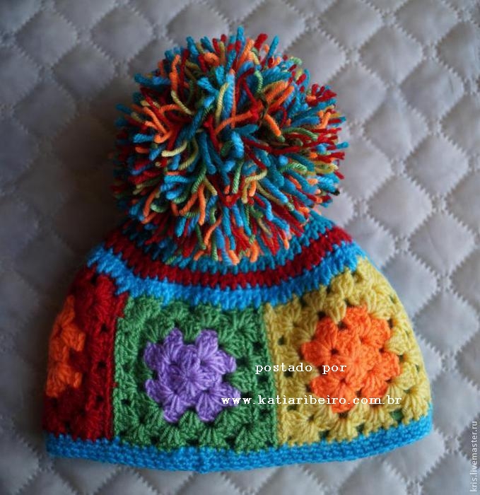 TOUCA EM CROCHÊ COM QUADRADINHOS DA VOVÓ