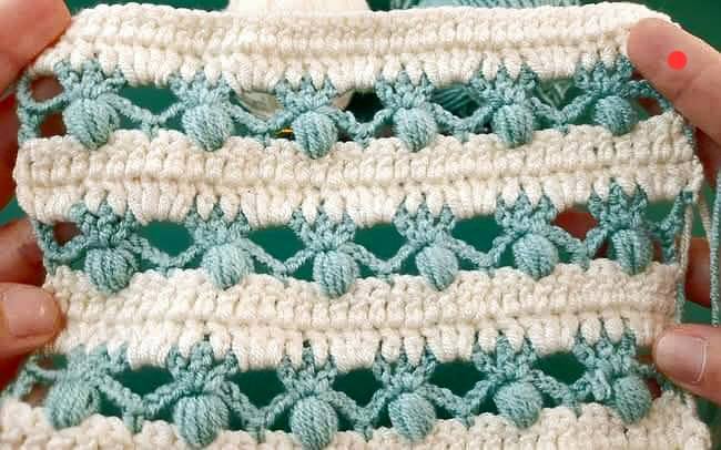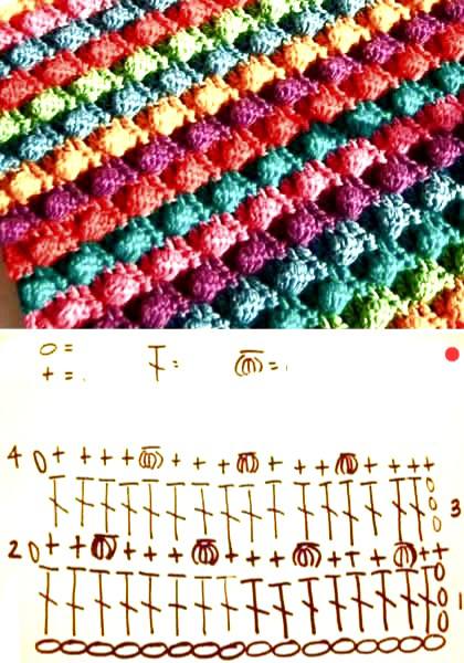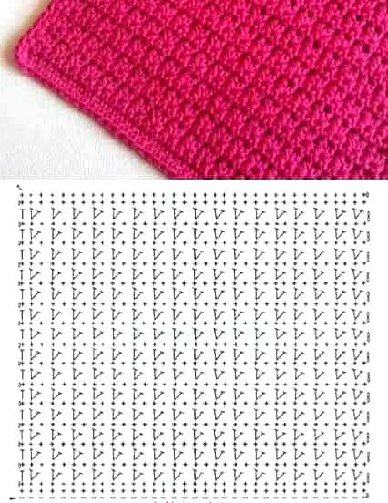 Amostra: pule 1 ponto, faça pb no seguinte; volte e faça pb no ponto pulado, cruzando. - Ponto Granito/Musgo (moss stitch) — Lindo para mantas