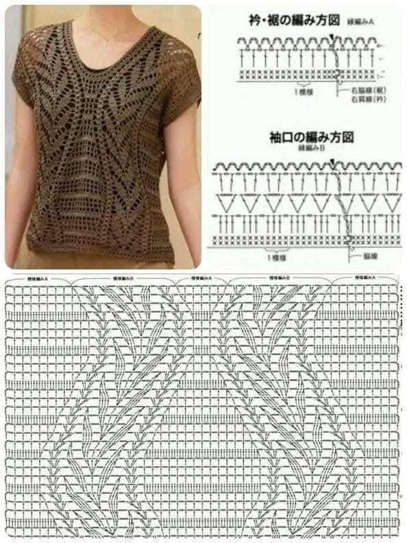Gráficos e Inspirações de Blusas de Crochê Com Vídeo Aula Passo a Passo no Final: