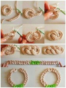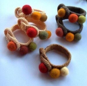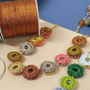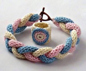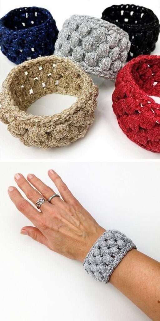 - Pulseiras: feitas com pontos fechados ou abertos, algumas com detalhes em pedrarias ou franjas para um toque especial.
