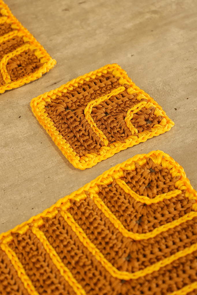 Rendimento: 2 novelos de 500g de fio Náutico, rendem 2 porta copos e 2 jogos americanos.