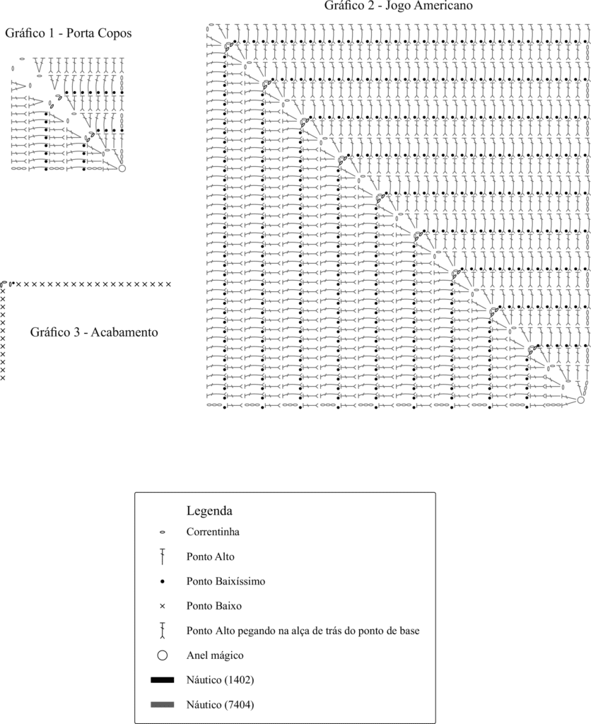Amostra: cada motivo do gráfico 1, mede 14 cm, feito com fio Náutico e Ag. 4,5 mm