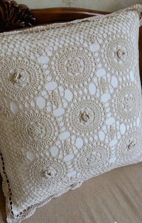- Capa de Almofada de Crochê com Flor Aplicada: Crie a Sua!