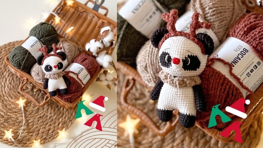 O corpo do panda é construído em torno dessas pernas, com cores alternando inteligentemente entre preto e branco, conforme a necessidade. Utilizar o fio condução ou técnicas de jacquard ajuda a trocar as cores de forma suave, minimizando falhas visuais. A arte de aumentar e diminuir os pontos é vital para modelar o corpo e dar ao panda uma forma mais realista e proporcional.