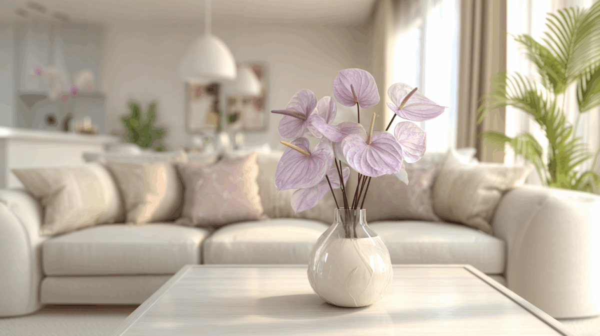 Delicado e diferente, o antúrio lilás traz um ar criativo à decoração. Essa cor é perfeita para quem deseja inovar sem perder a harmonia visual.