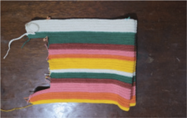 Corte o fio e troque para a cor 004 (cru) e teça 150 pb por 3 carr.