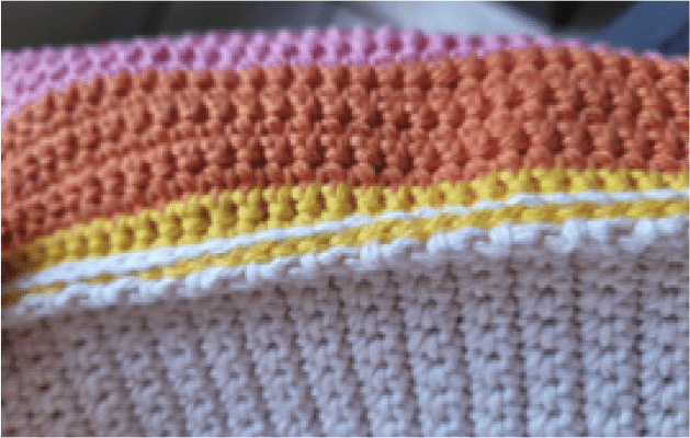 Corte o fio e troque para a cor 2234 (jerimum) e teça 150 pb por 3 carr.