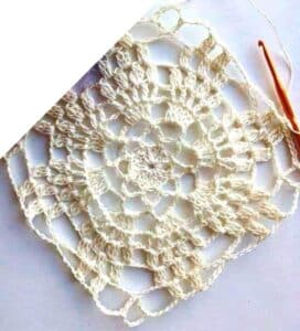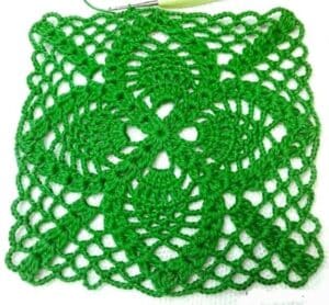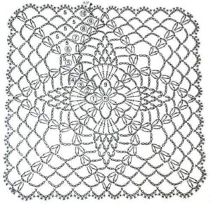 Amostra: Um quadrado de 10 cm em m. p. com a ag nº 6,0mm e fio duplo = 7 p. x 5 carr.
