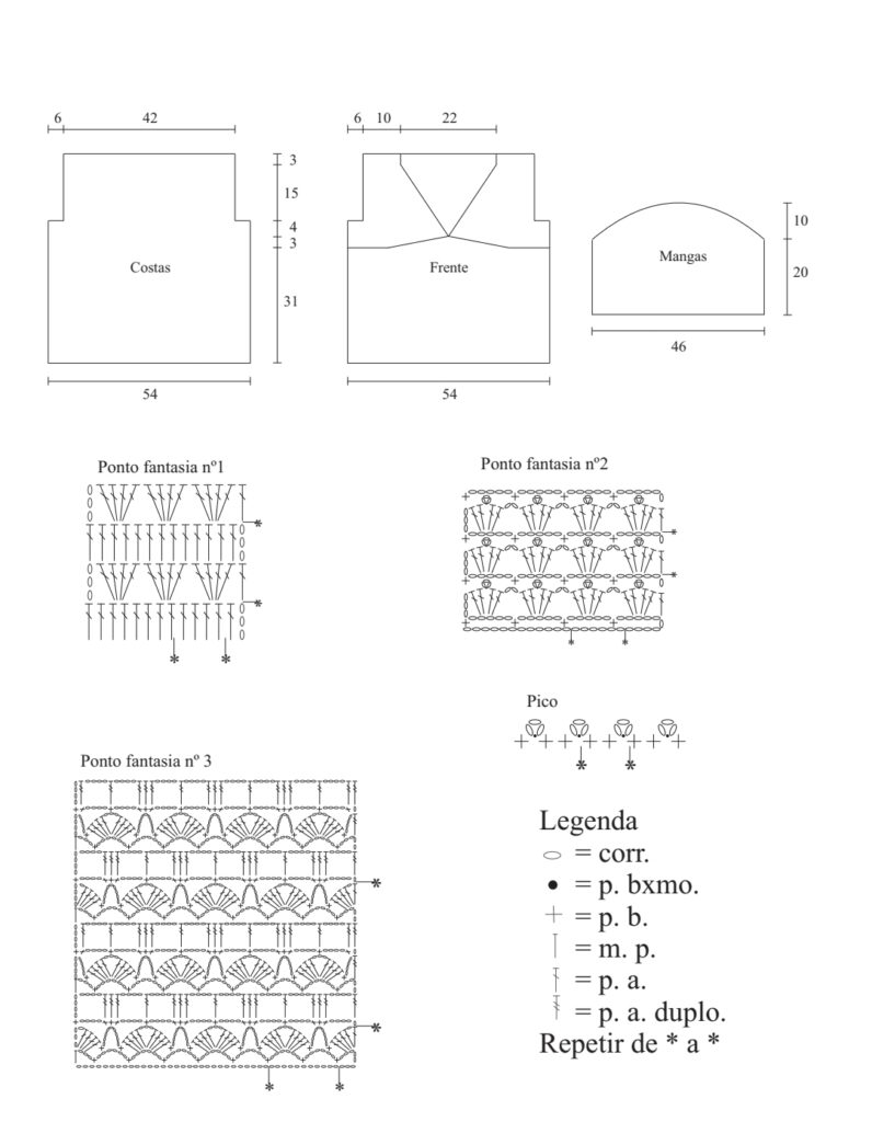 Gráfico blusa de crochê meia manga