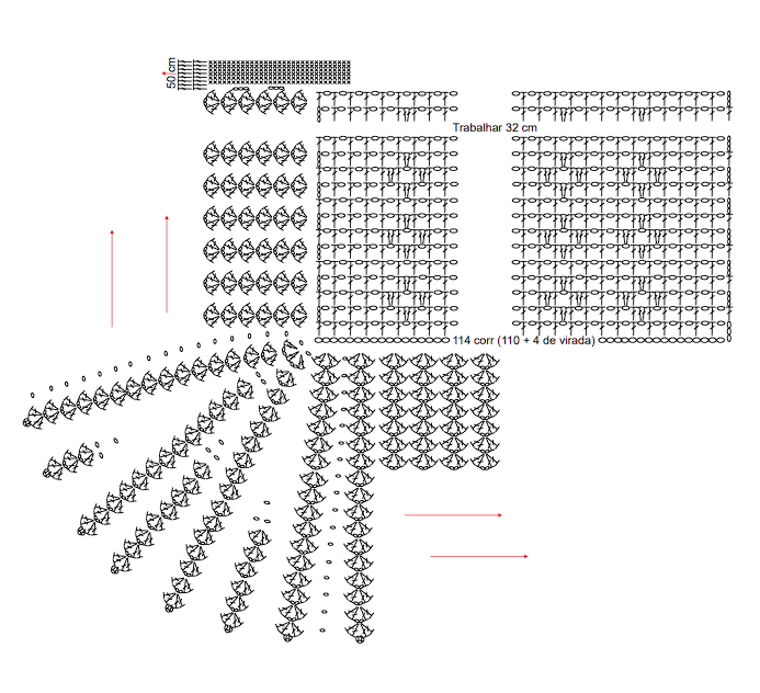 - Confecção do Bolso: Inicie com 34 correntinhas e siga o mesmo padrão do avental, garantindo que os motivos laterais se mantenham com 2 quadrados de distância da borda.
