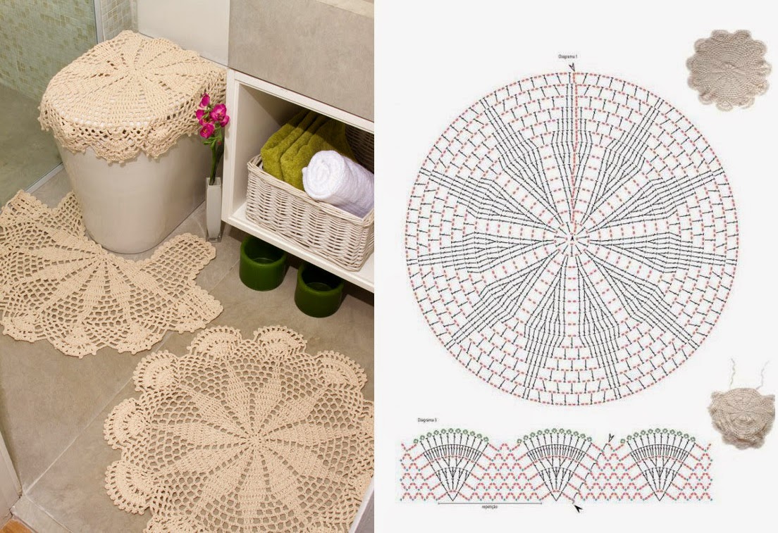 Um belo jogo de banheiro em Crochê , esse feito no Barbante Cru que também tem sua beleza e você pode aproveitar o mesmo gráfico deste jogo de banheiro para fazer seu tapete redondo de crochê.