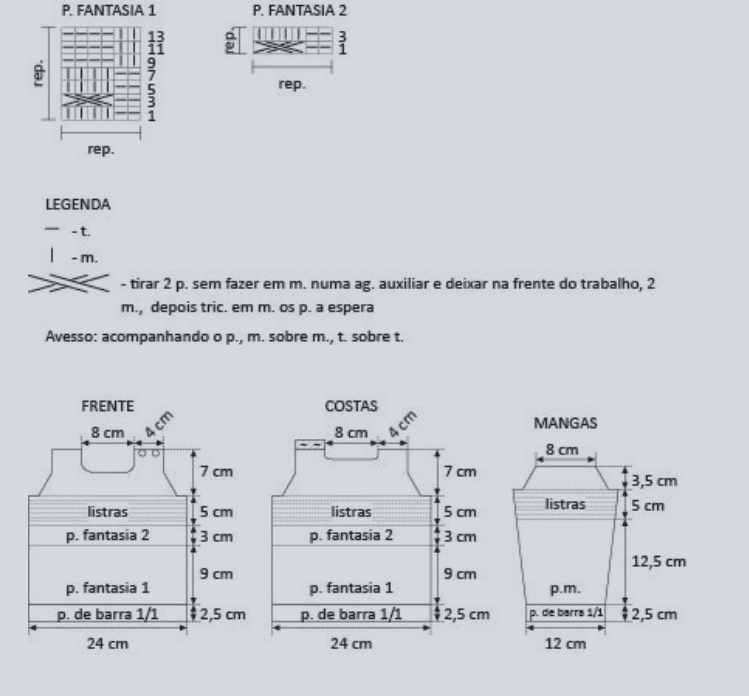 do decote a cada 2 carr. 6 vezes 1 p.. A 26,5 cm desde o começo arremate.