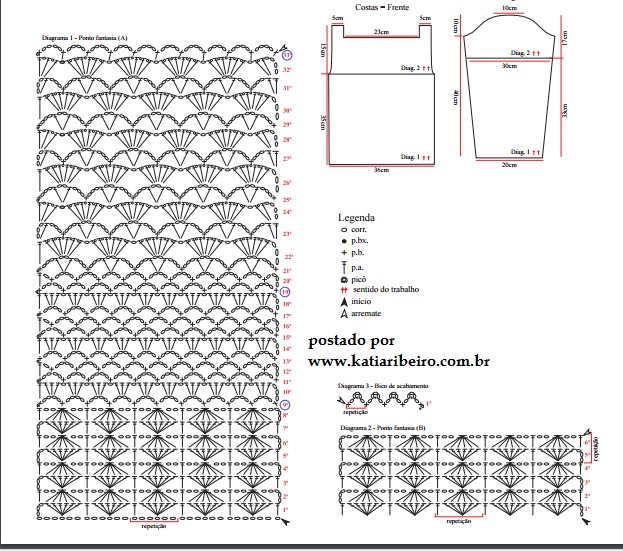 E agora vamos a receita e gráficos desta linda blusa de crochê?