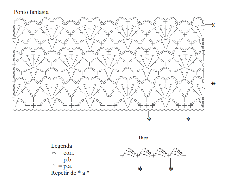 - Ponto fantasia: siga o gráfico para detalhes do padrão.