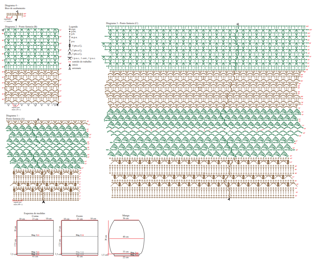 Gráficos da Blusa Natureza em Crochê: