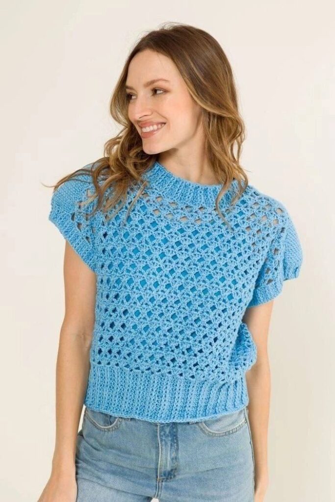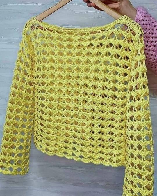 - Blusa de Crochê Leve para Verão Tropical com Decote Canoa!