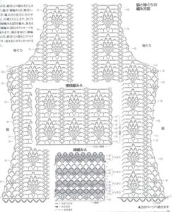 Costas: use a ag. de crochê de 2,0 mm e o fio Cléa Duplo (3106). Inicie a peça pela parte inferior, trab. um cordão de 107 corr. Sobre o cordão, trab. no p. fantasia (A) acomp. o diag. e os pts. de rep. da 1ª até a 11ª carr. Na carr. seg., prossiga no p. fantasia (B) acomp. o diag. 2 e os pts. de rep. da 12ª até a 64ª carr. Rem. o fio e reserve a peça.