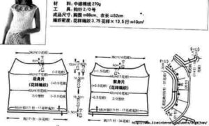 Montagem e acabamento: use a ag. de tapeçaria e o fio Cléa Duplo (3106). Feche os ombros (14 cm) e as laterais do corpo (32 cm) deixando a abertura das cavas de 20 cm.