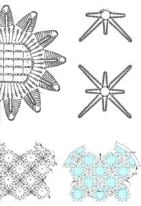 Amostra: Um quadrado de 10 cm em p. fantasia 1 seguindo o gráfico com a ag. nº 1,75mm = 33 p. x 12 carr.