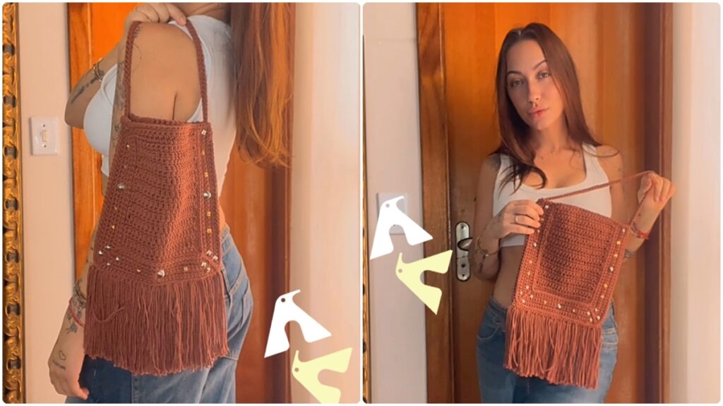A bolsa de crochê boho, quando finalizada, possui dimensões aproximadas de 24 centímetros de largura por 27 centímetros de comprimento. Essas medidas são ideais para criar um acessório prático e estiloso, perfeito para o uso diário ou ocasiões especiais.