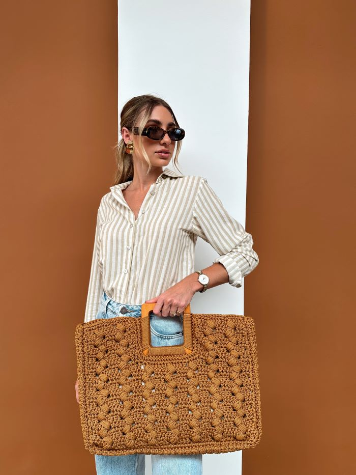 Look Casual: Para um visual casual, combine a bolsa Estância com jeans, uma blusa simples e tênis ou sandálias. A bolsa adiciona um toque de elegância ao seu look sem exageros.