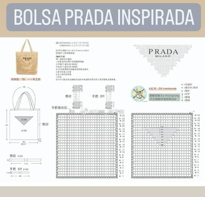 RECEITA DE BOLSA DE CROCHÊ PRADA INSPIRADA