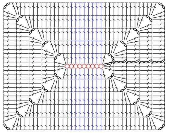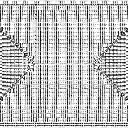 Pontos utilizados no crochê: corr.: correntinha, p.bx.: ponto baixíssimo, p.b.: ponto baixo, p.b.l.d.: p.b. laç. a alça detrás da corr. formada pelo p. da carr. anterior, p.b.r.f.: p. baixo em relevo pegando pela frente do p. da carr. anterior, p.a.: ponto alto, p.a.r.f.: p. alto em relevo pegando pela frente do p. da carr. anterior, fantasia: siga o diag. 1.