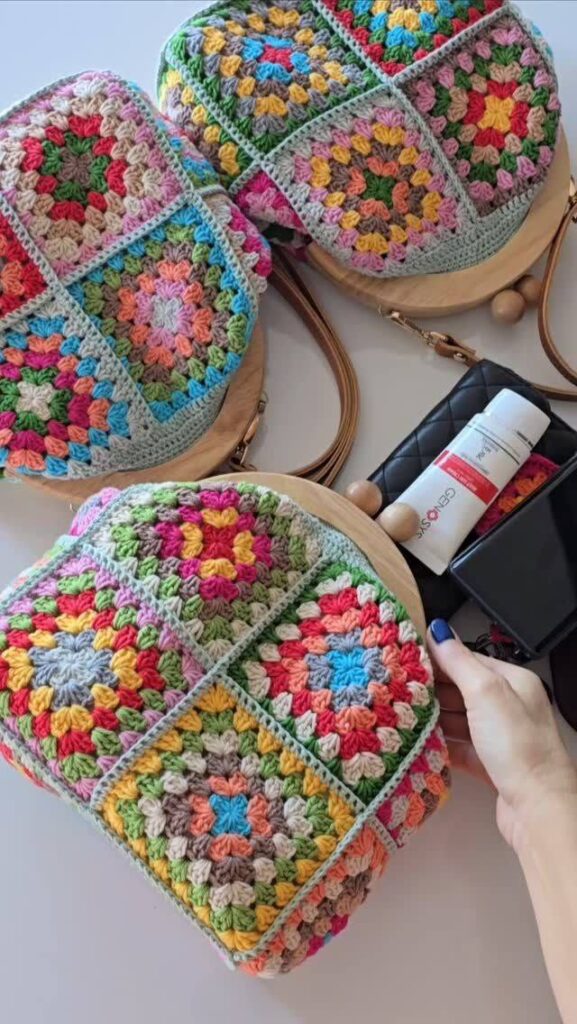 Os granny squares nasceram como uma forma criativa de aproveitar sobras de fios, mas logo se transformaram em um ícone do crochê. Com sua construção modular, esses quadradinhos permitem infinitas combinações de cores e padrões. Hoje, eles saíram das colchas e almofadas para conquistar o universo da moda, especialmente em bolsas que combinam nostalgia e modernidade.