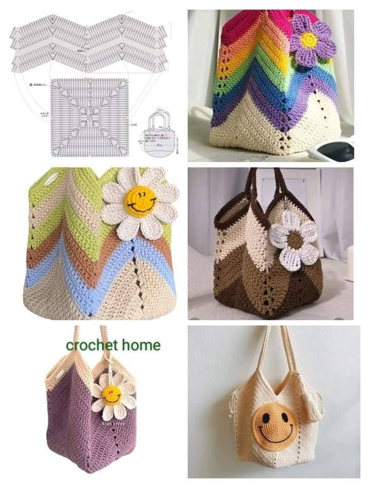 Gráficos e Ideias Lindas de Bolsas de Crochê Grandes: