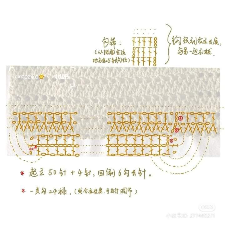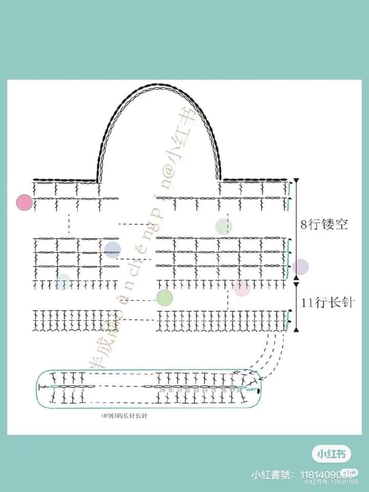 - Para a alça, faça uma corrente com 60 pontos de crochê.